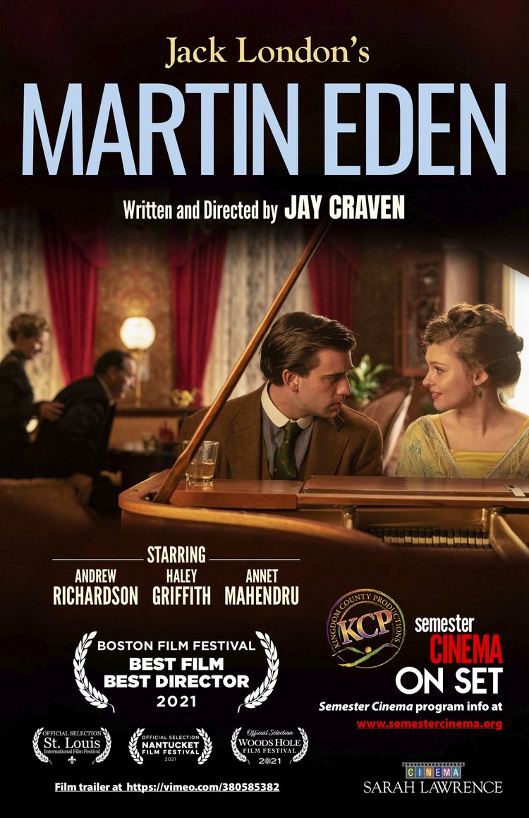 Jay Craven’s new independent narrative feature film, “Jack London’s Martin Eden,” is now on tour. The film received its world premiere at the Nantucket Film Festival in June and has won Best Film and Best Director awards at the Boston Film Festival and Best Narrative Feature at the Arlington International Film Festival. Other festival dates include The Woods Hole Film Festival and St. Louis International Film Festival.